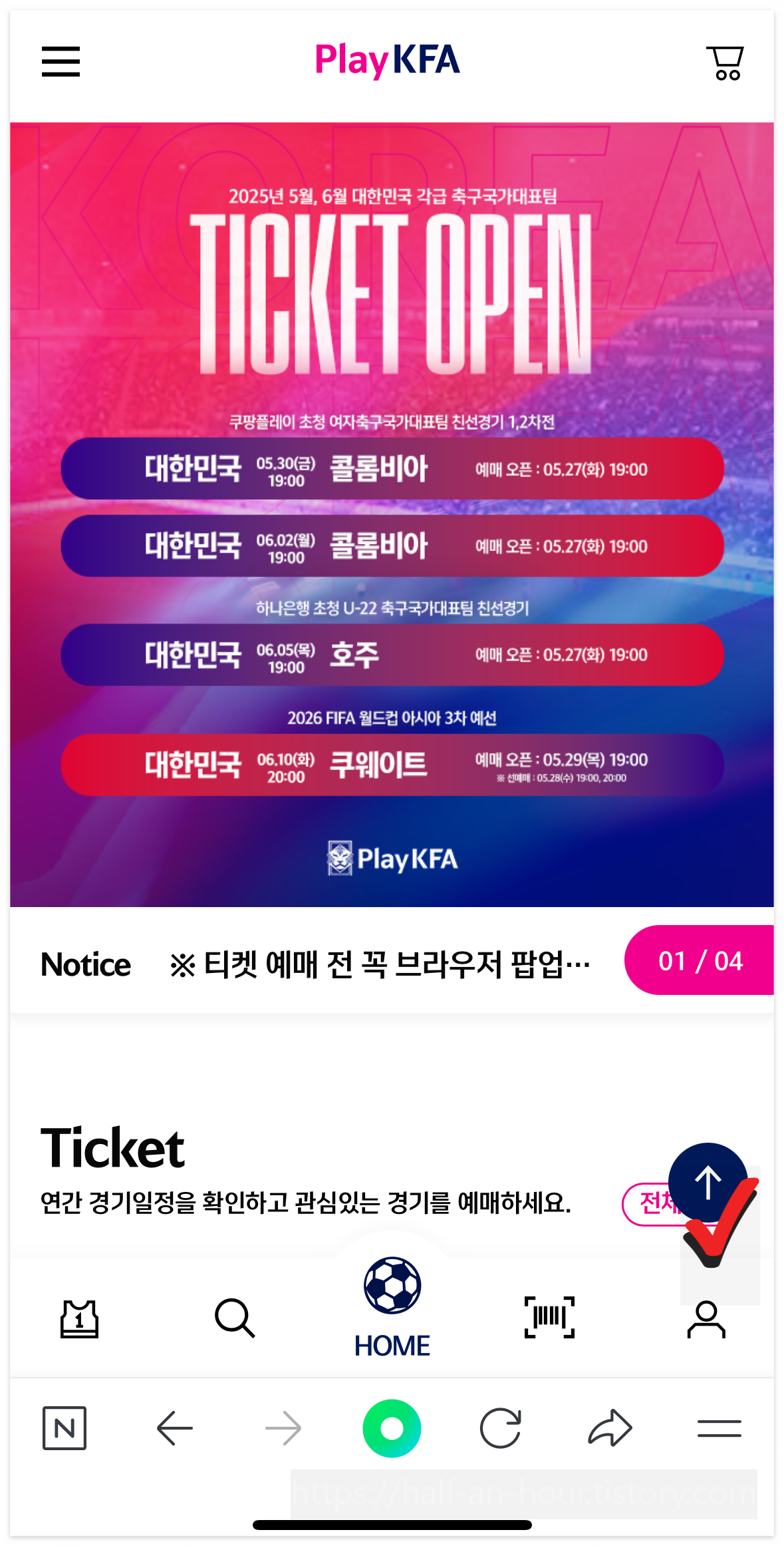 Play KFA 국가대표 축구경기 티켓 보내기(양도) 방법