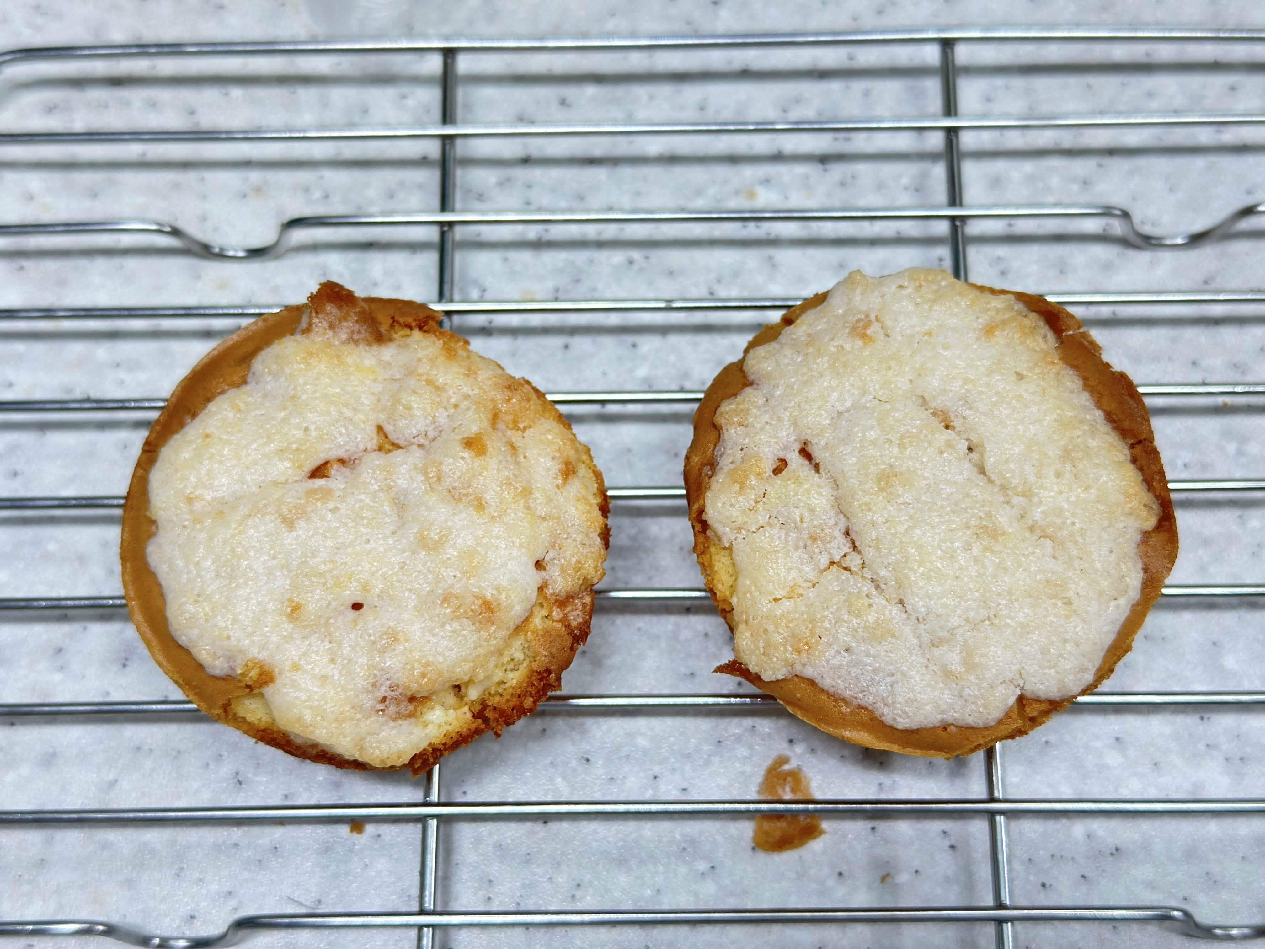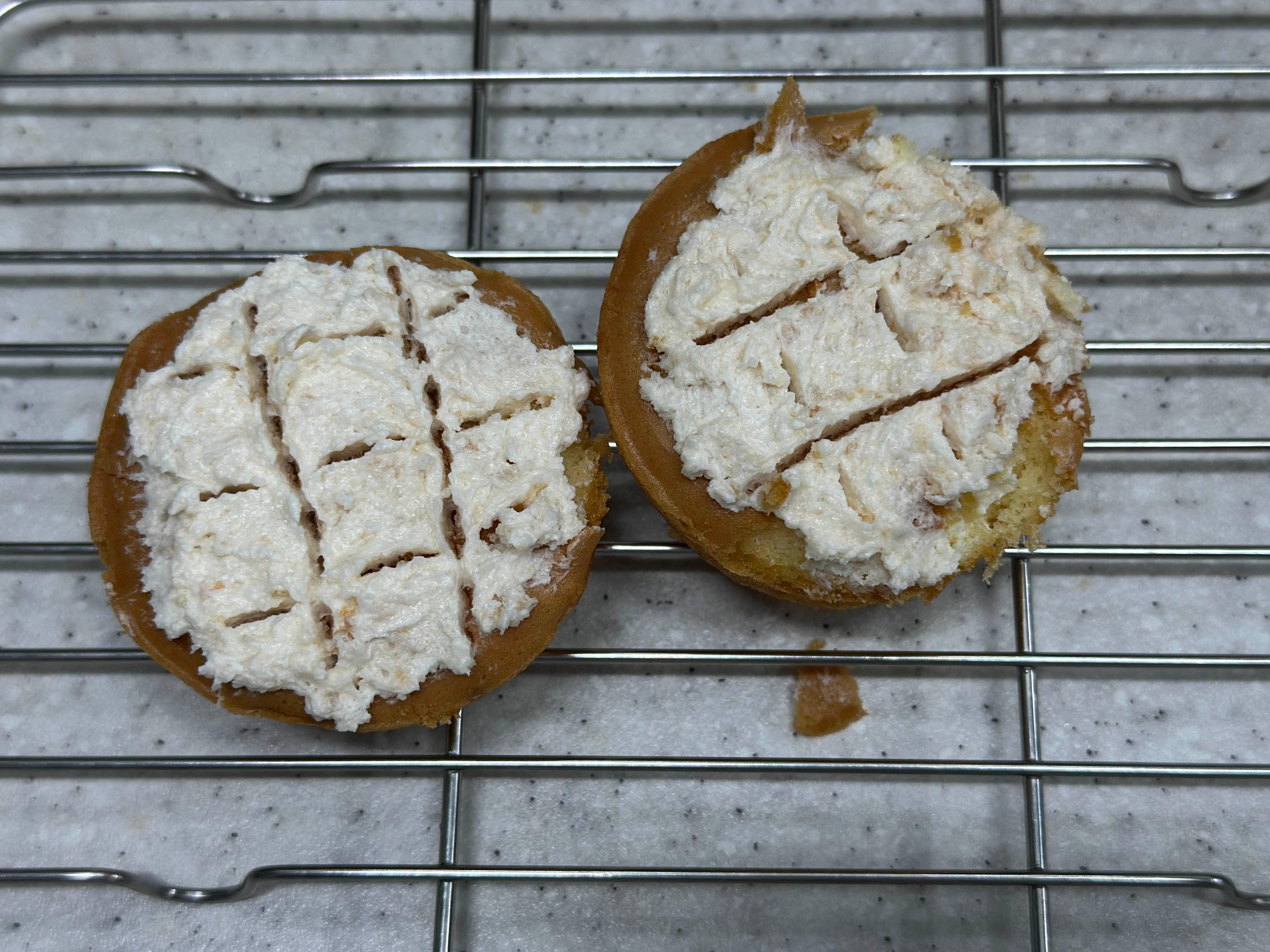 1. 생각보다 부드러운 카스타드 위에 메론빵 스프레드 바르기는 어려웠다.